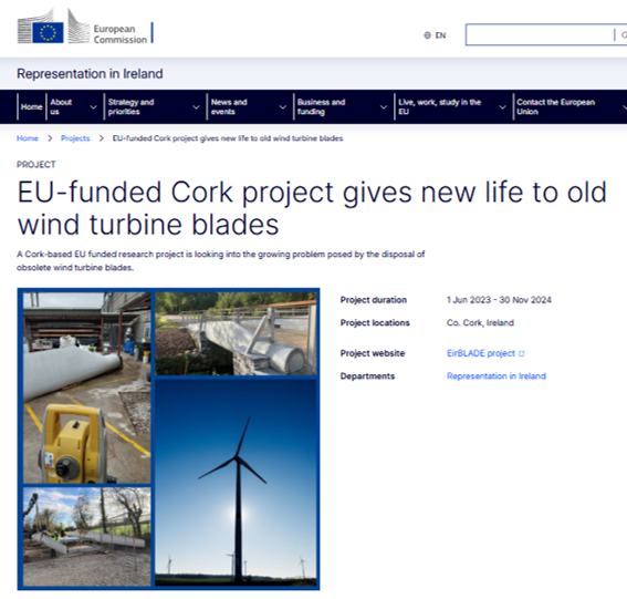 EU-funded Cork project gives new life to old wind turbine blades